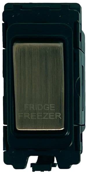 G&H G-476AB-FF Antique Brass Grid Module 20A Double Pole 'Fridge Freezer' Switch Black Surround