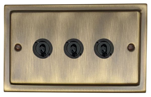 G&H TAB83C-FBK Trimline Plate Antique Brass 3 Gang 2 x 2 Way 1 x Intermediate Toggle Light Switch