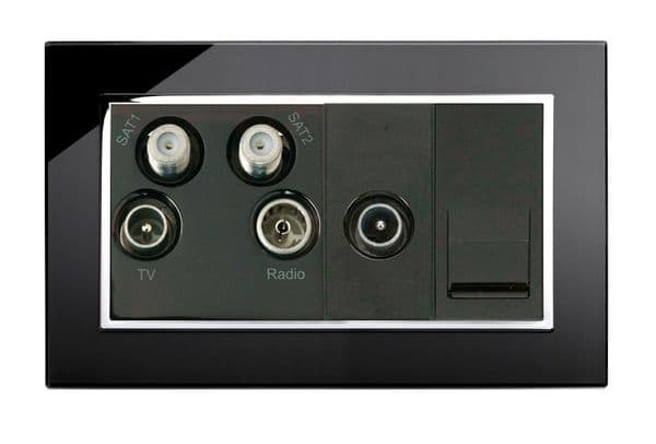 RetroTouch Media Panel - SAT / TV / VHF Double Plate Black Glass CT 04313